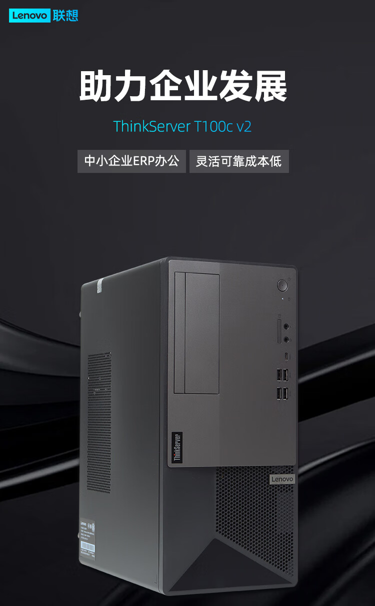 ThinkServer T100C v2 中小型企业PC塔式服务器主机erp财务办公电脑 i7-12700(12核 2.1-4.9G) 16G内存丨256G+2×1T硬盘丨RAID